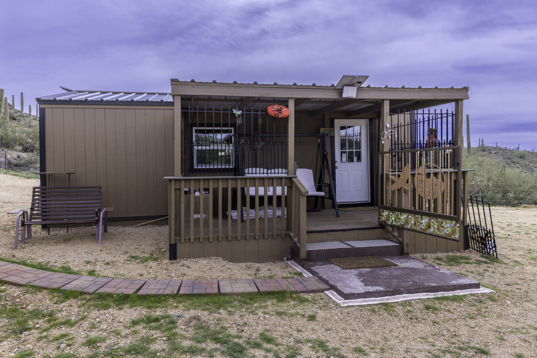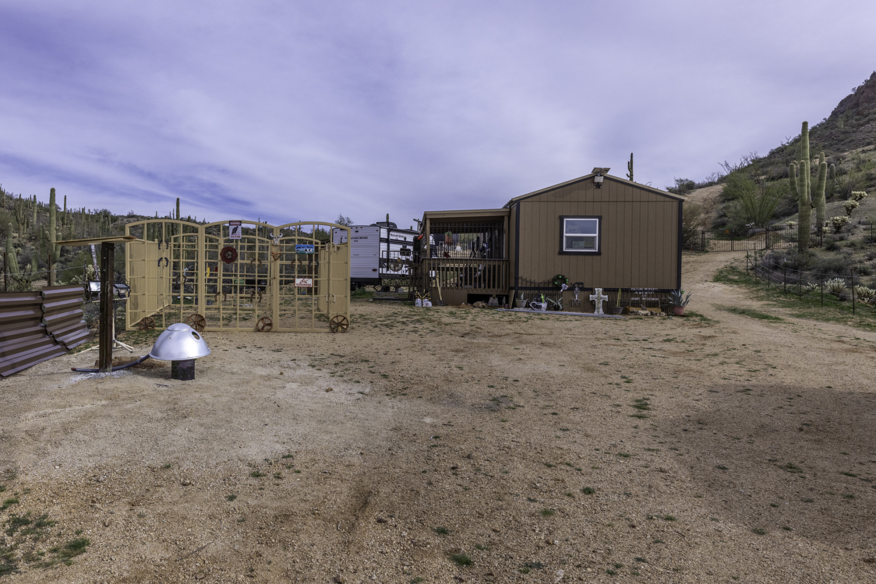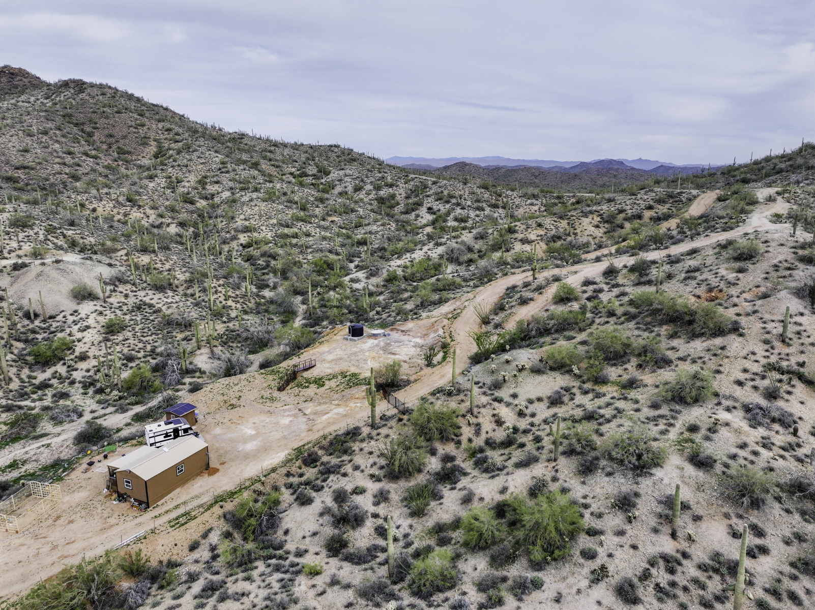 000 VULTURE MOUNTAINS RANCH – Discover a rare opportunity to own 35.48 acres known as the Vulture Mountains Ranch, perfectly positioned in the scenic saddle between the Vulture Mountains and the Caballeros Peaks and surrounded by approximately 71,000 acres of BLM land—offering exceptional privacy, open space, and endless exploration. This special off-grid property features a private well powered by solar panels with a 2,500-gallon storage tank, along with a small residence, storage shed, RV on a concrete pad, and a 12′ x 12′ corral, making it ideal for weekend escapes, recreational use, or a private desert retreat. The residence is 800 sq. ft. with 1 bedroom and 1 bathroom. The entire property is powered by solar, providing energy independence and low operating costs. Enjoy breathtaking mountain vistas, towering saguaros, abundant wildlife, and serene desert beauty in every direction. Adding to its uniqueness, the property includes two patented mining claims, the Gold Nugget Claim and the Canyon City Claim. This offers historical significance and potential value. Recent assay testing indicates the presence of valuable minerals (Buyer to verify).