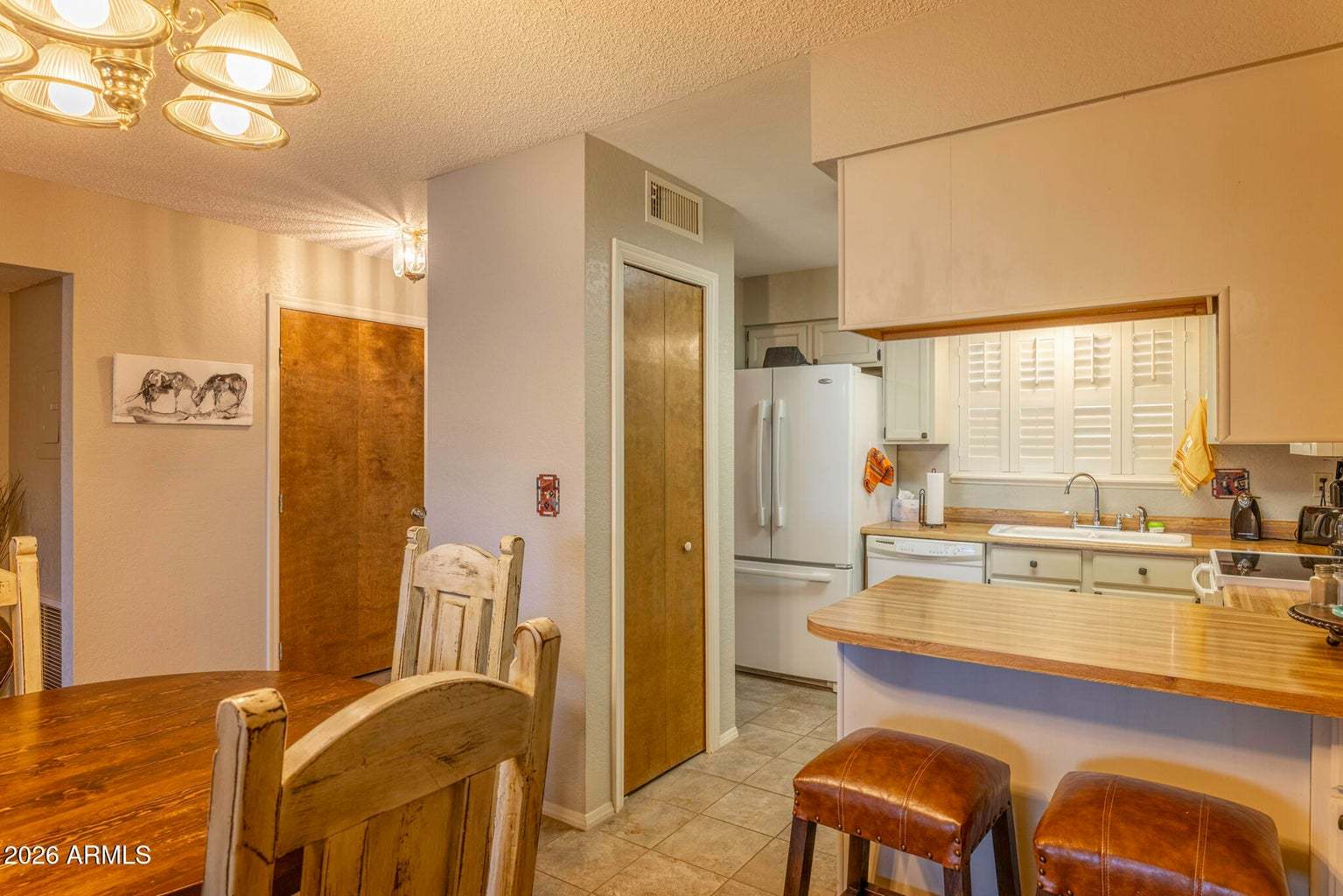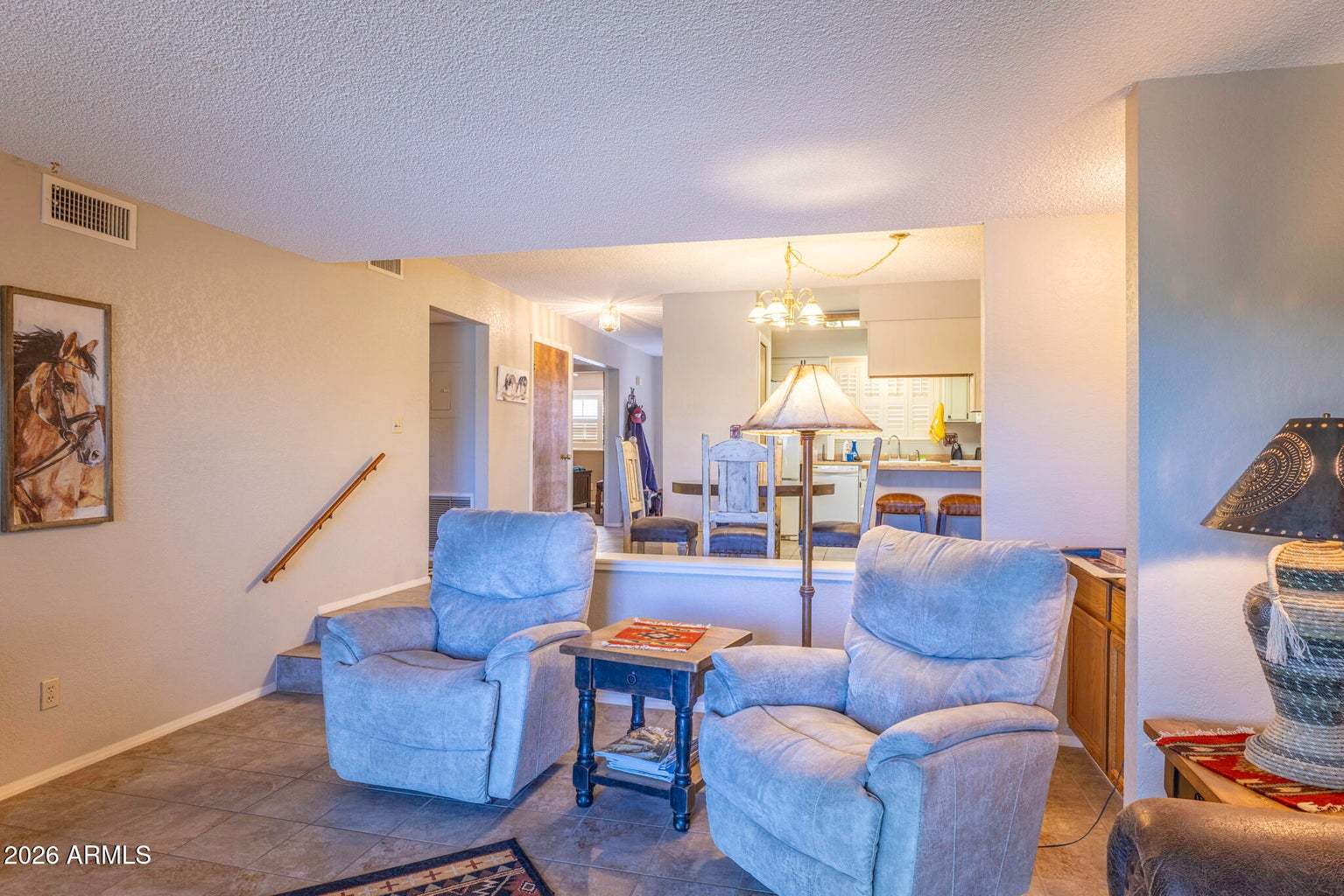100 NORTH VULTURE MINE ROAD #100 – Enjoy easy desert living in this charming 2-bedroom, 2-bathroom condominium in the heart of Wickenburg. Offering 1,257 square feet, this comfortable lower-level unit provides convenient access and a relaxed lifestyle in a highly desirable location. Step inside to a spacious layout designed for everyday living, with a bright living area that flows naturally to the private back patio, where you can unwind and enjoy pleasant views and Arizona’s beautiful outdoor scenery. The well-proportioned bedrooms and two full bathrooms provide comfort and flexibility for guests, hobbies, or a home office. Residents enjoy access to a community swimming pool, perfect for cooling off during warm desert days, along with a designated covered parking space for added convenience. Ideally located within walking distance of local shopping, restaurants, and the post office, this condo offers the perfect blend of convenience and small-town charm. Whether you’re looking for a full-time residence, winter getaway, or low-maintenance investment, this property is a wonderful opportunity in one of Wickenburg’s most accessible locations. Furnishings are negotiable, making it easy to move right in or customize the space to your liking.