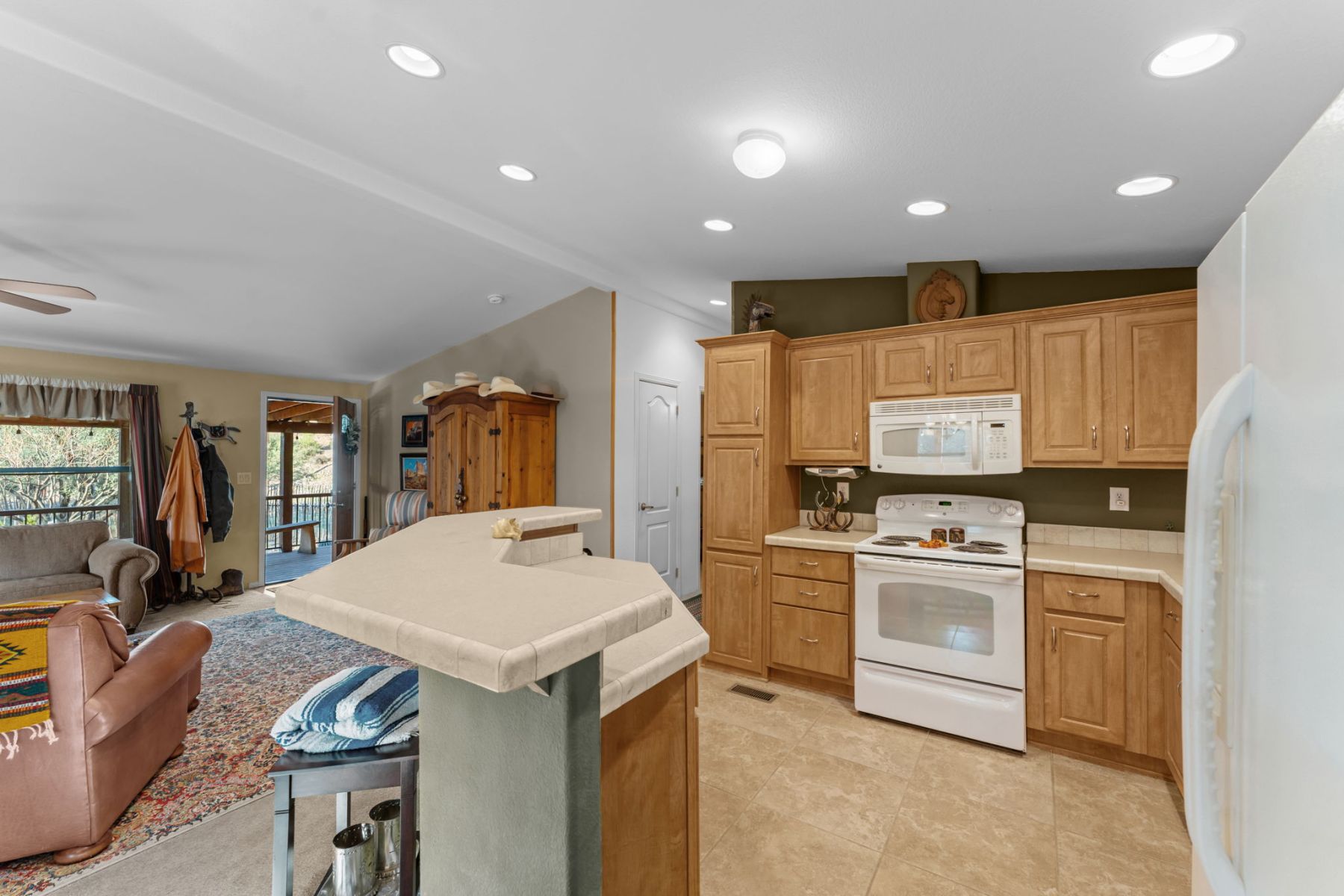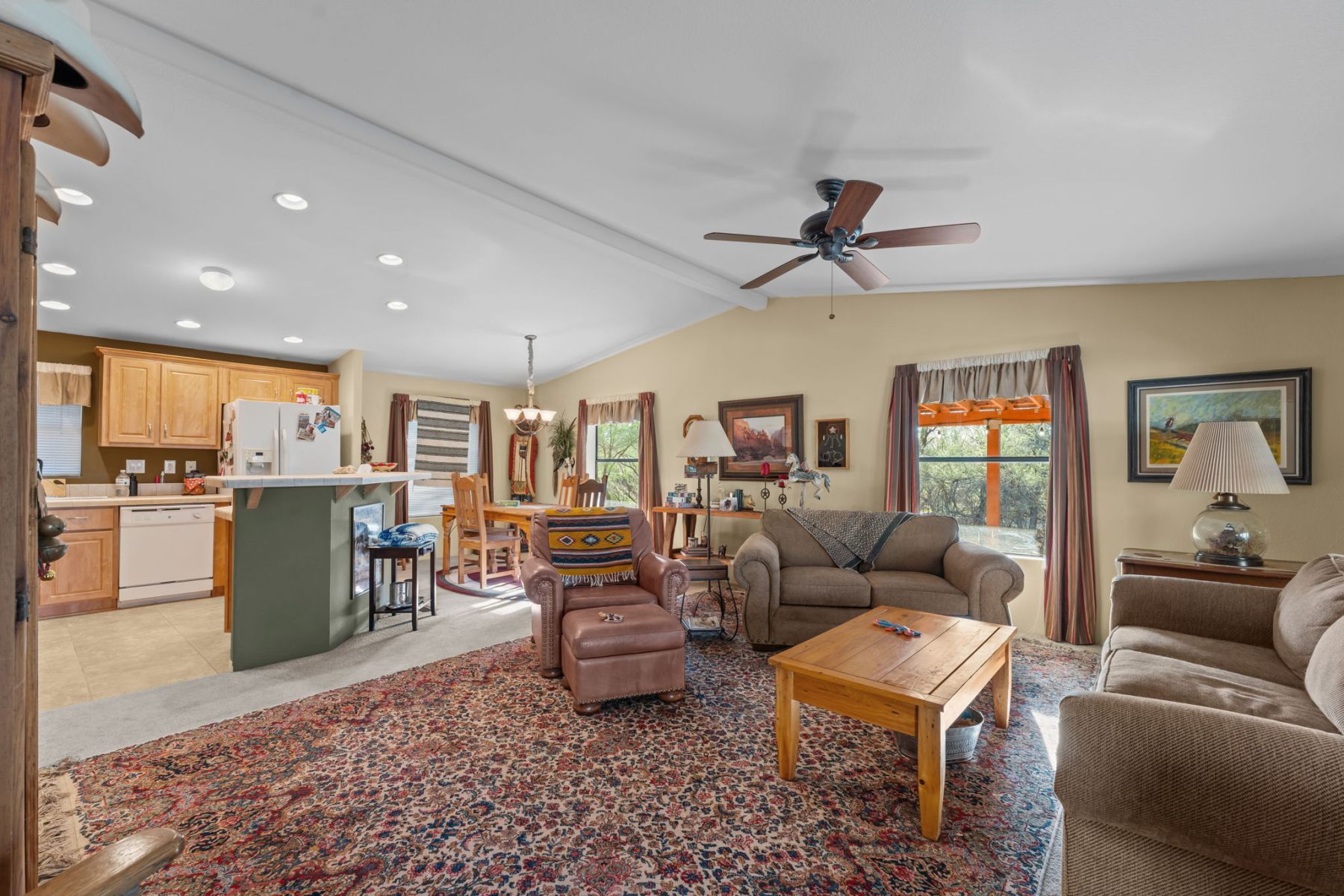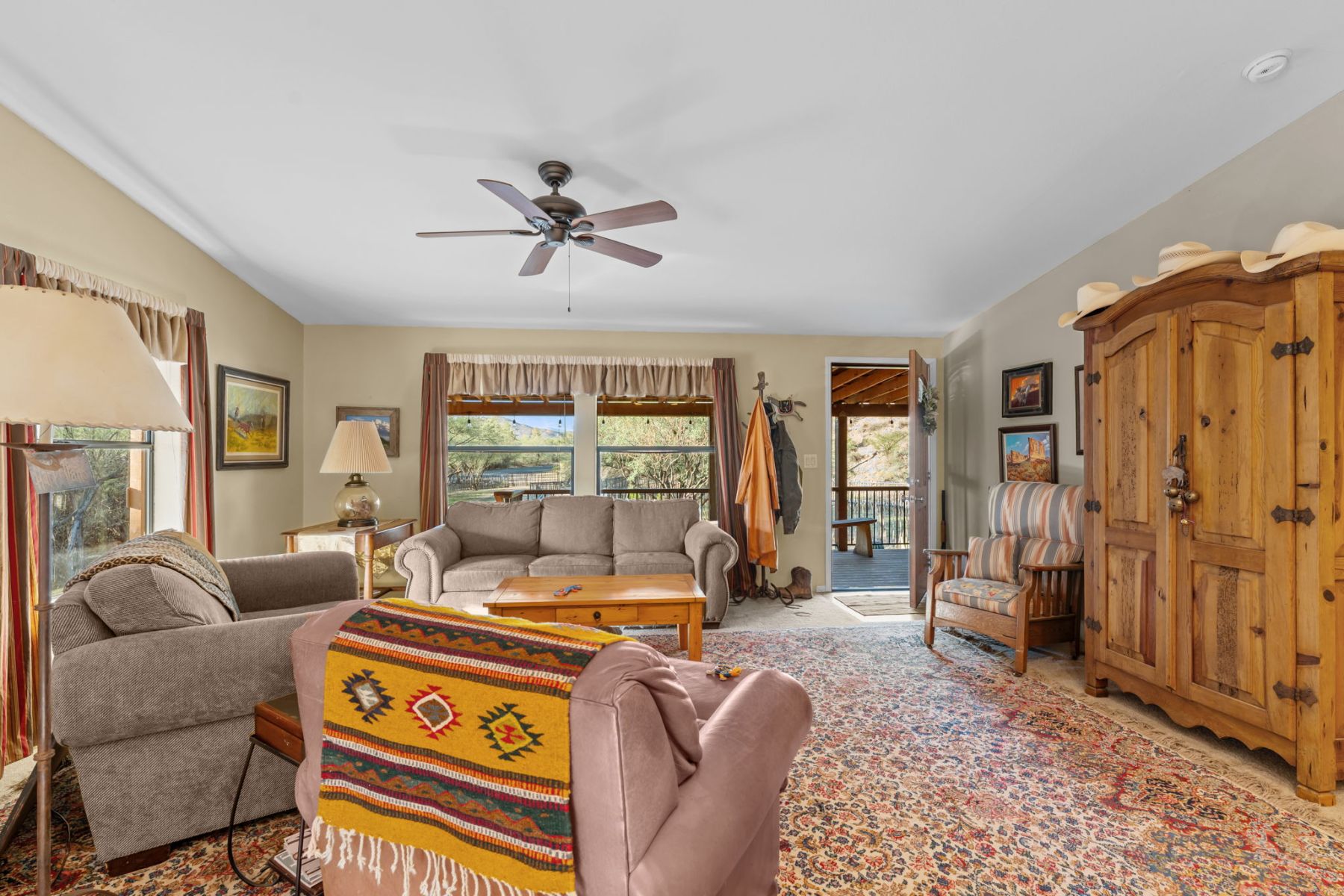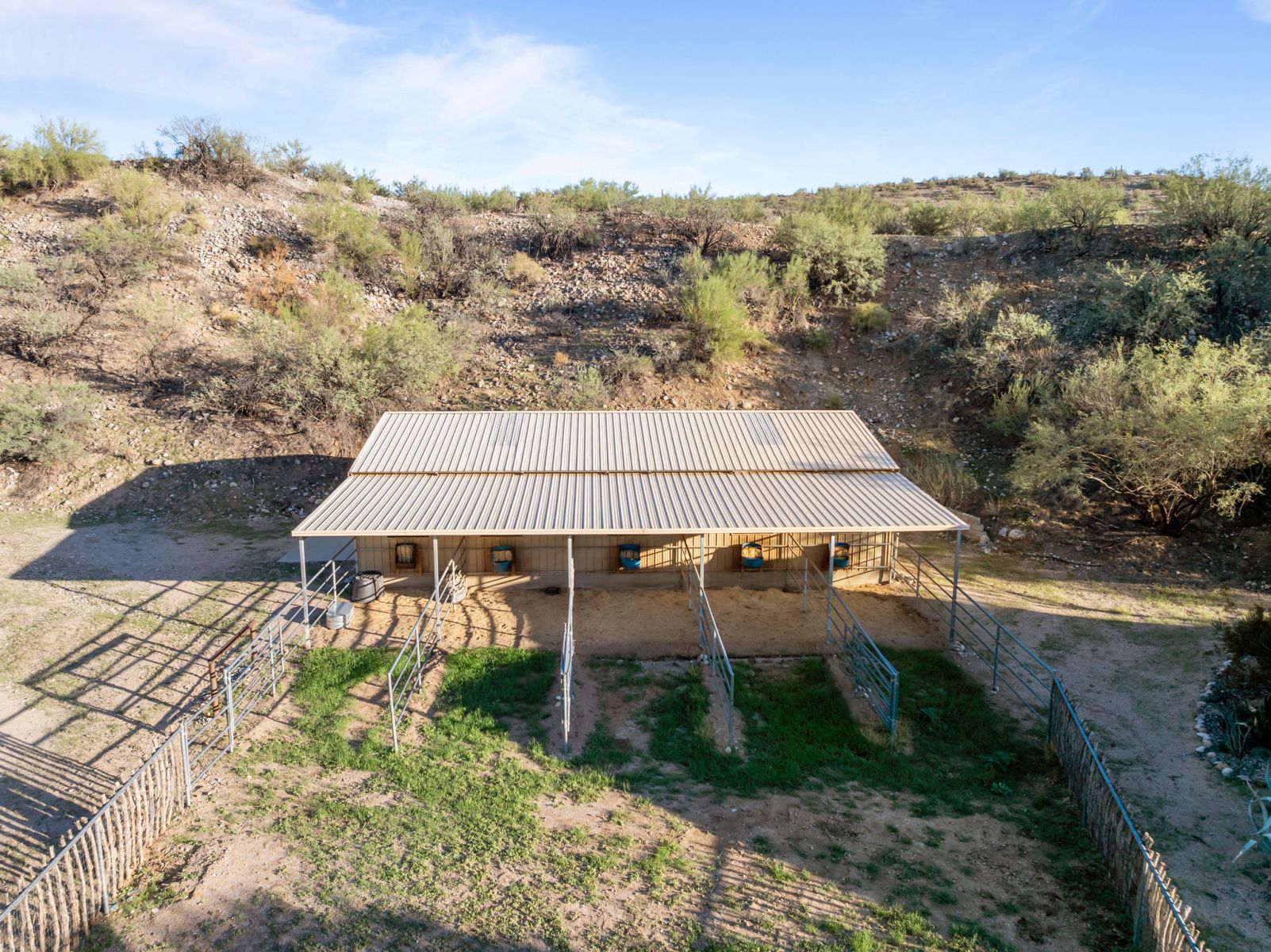 36455 SOUTH RONCON ROAD – Enjoy this 4.36 acre horse property with a home, barn, pens, and private well. The home is approximately 1,210 square feet and features a functional floor plan with an open living and dining area. The primary bedroom has a full bathroom and walk-in closet. The second bedroom and bathroom are suitable for guests, family, or office use. The home’s exterior is finished in wood siding and topped with architectural shingles. A covered deck made of Trex material provides a shaded outdoor area for sitting or hosting. A carport is also included for vehicle protection, with mature trees offering shade and windbreaks. The property’s provides clear views of the surrounding hills and desert landscape. Included also is a 32×50 barn/shop with a RV hook spot, shop is fully concreted, along with 5 pens with turn outs.