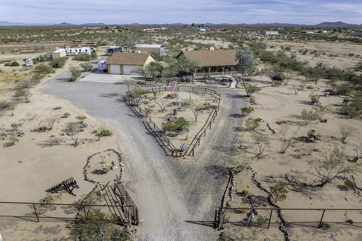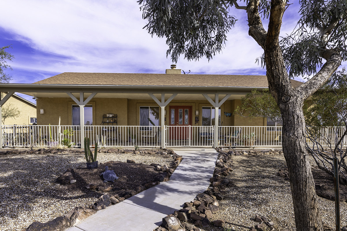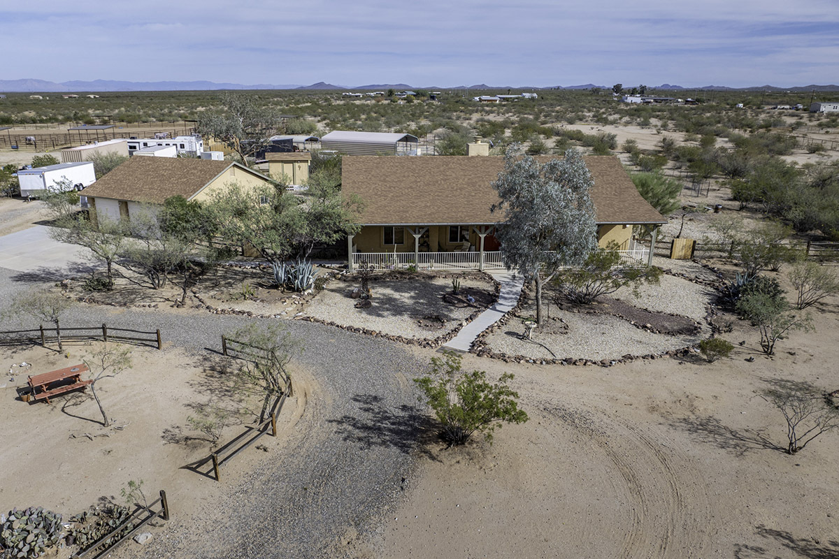 52019 NORTH FOREPAUGH PEAK ROAD – This ranch style, three bedroom, two bath home was built by the current owner in 1999 on 5.48+ acres with a modest horse set up and room for you to build more. Completely perimeter fenced. Livestock panels convey as does the hot tub on the back porch. Detached garage workshop is large enough for your four-door long bed truck. Kitchen offers gas stove and range. Master Bath has separate tub and shower. Large front and back porches overlooking horse property. Guest room has a built-in queen-size murphy bed ready for your winter visitors. Property includes 2 parcels: 506-09-076-J and APN 506-09-076-M. Four shares on the well and subject property is the well manager. Potential here and priced to sell.