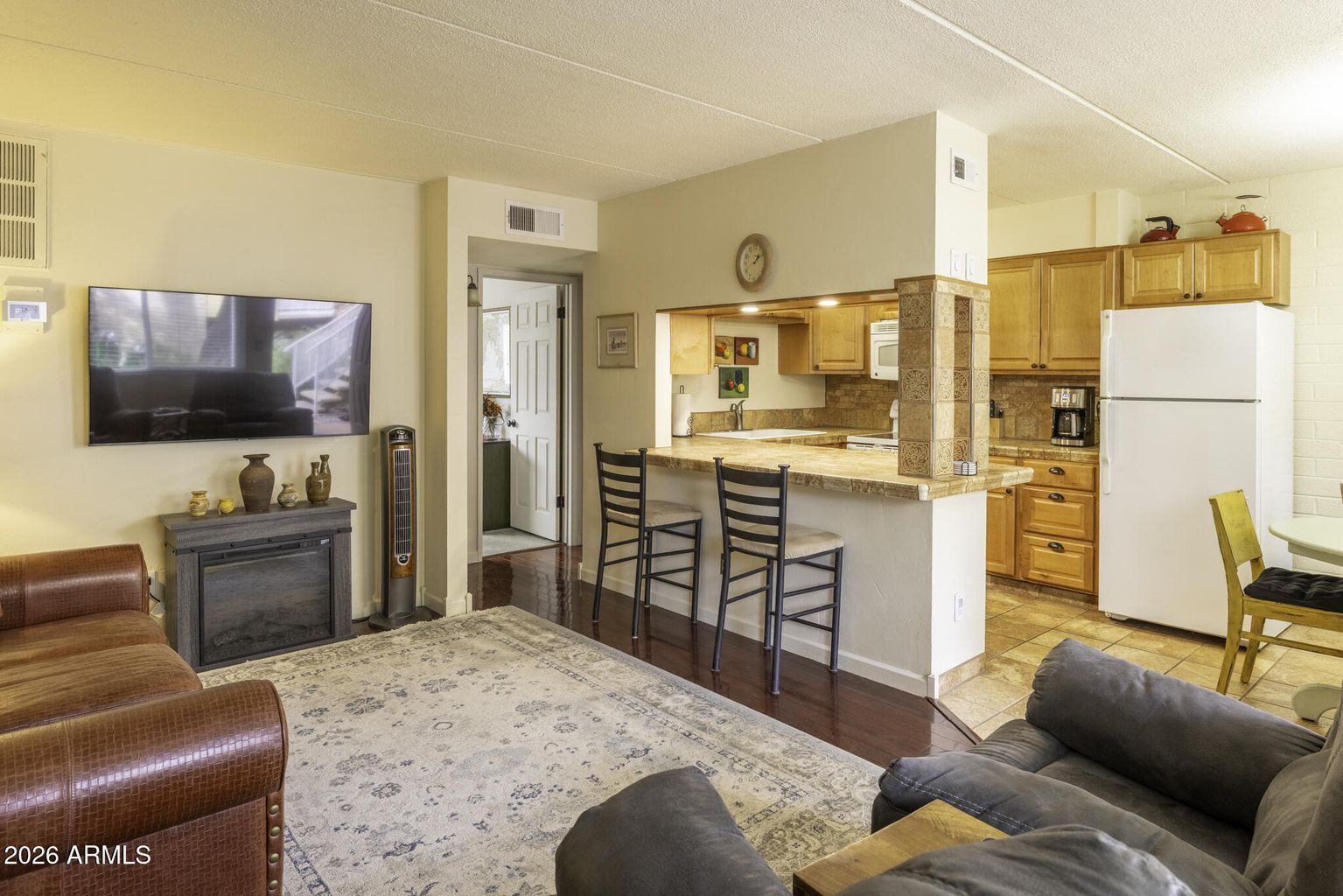90 WEST YAVAPAI STREET W 1 – Convenient downtown living in Western Gardens Condominiums! This desirable ground-floor condo is 608 sq ft. It is a 1-bedroom, 1-bathroom unit that offers easy, no-stairs access and a comfortable, low-maintenance lifestyle. Ideally located within walking distance of historic downtown Wickenburg, you’ll enjoy quick access to shopping, dining, entertainment, and local events. The community features a sparkling pool and BBQ area, perfect for relaxing or entertaining guests. Inside, the unit is well-laid-out and includes a brand-new A/C unit, providing efficient cooling and peace of mind during the warmer months. Whether you’re looking for a full-time residence, winter retreat, or investment opportunity, this condo offers location, convenience, and value in one of Wickenburg’s most walkable neighborhoods. Can be sold fully furnished.