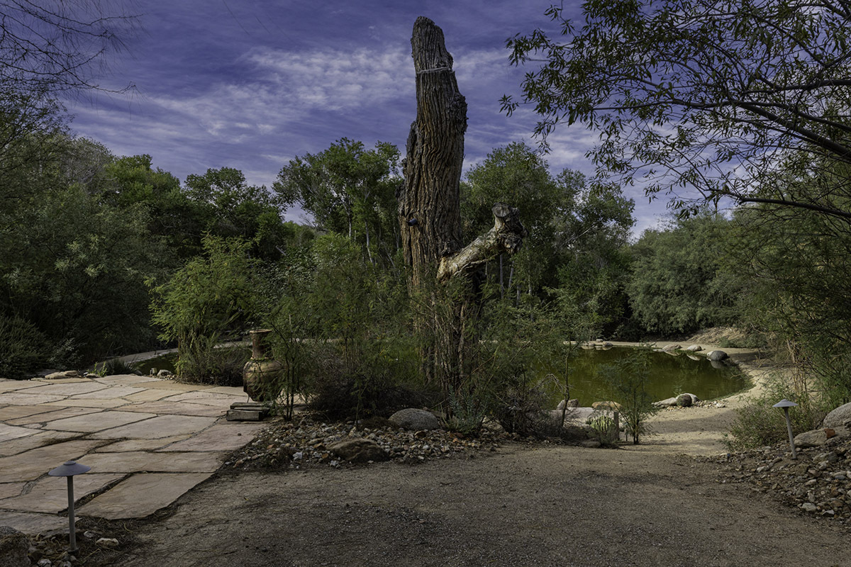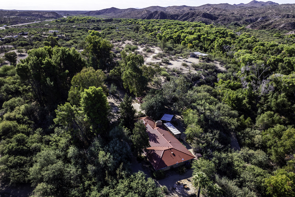 On the main property there are currently 10 Full RV Hookups (30 & 50amp) strategically placed: two on the hilltop above the pond with extraordinary views and four nestled above the river walk overlooking the treetops of the Hassayampa River.