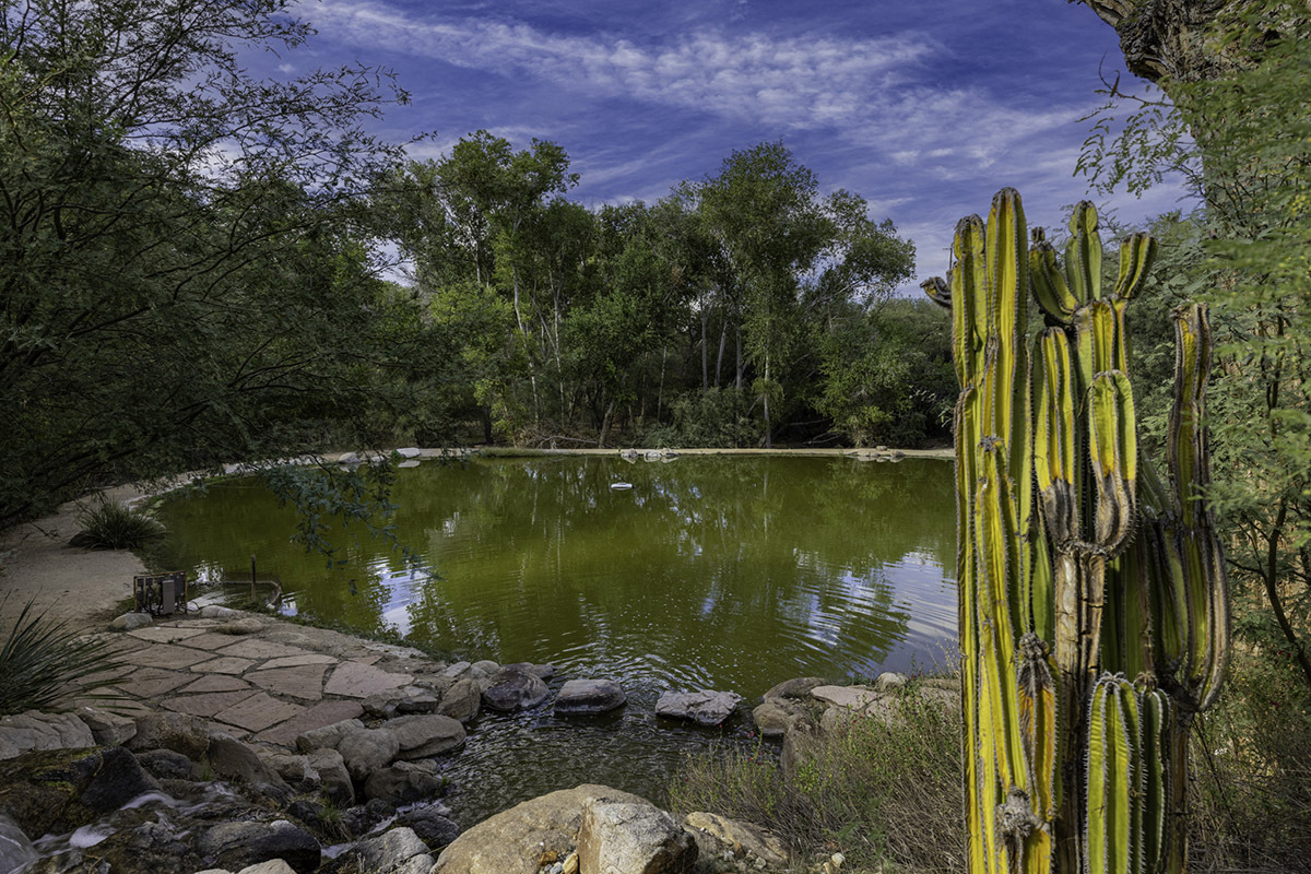 The centerpiece of the tranquil property may be the Pecan Orchard and the many varieties of fruit trees including apples, peaches, lemons, limes, pomegranates, and tangelos, harboring an abundance of wildlife.