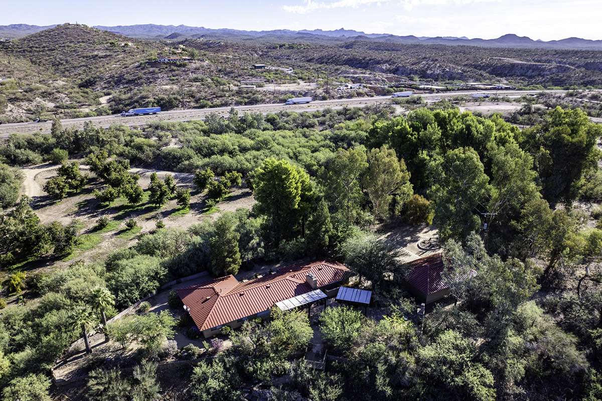 LAZY RC RANCH – Discover the legacy of the Lazy RC Ranch, an expansive 73 contiguous acre property bordering the Hassayampa River with four private entrances directly accessible from Highway 60. This estate features a meticulously upgraded residence offering three bedrooms and two and a half bathrooms, complemented by a detached three-car garage. Interior highlights include cherry wood cabinetry, Indian Piranha Granite countertops, an Ashfork stone fireplace, and a combination of wood, tile, and crisp white carpet flooring. Elaborate outdoor entertaining gallery overlooks the Hassayampa River, complete with intimate walking paths down to the riverbed. Extensive landscaping and water features surround the home and appear throughout the grounds. The property also boasts a 5,966 square foot climate-controlled workshop and event center, adjacent to a quarter-acre pond stocked with Bass, Blue Gill and Catfish finished with waterfalls and hand-laid flagstone paths.