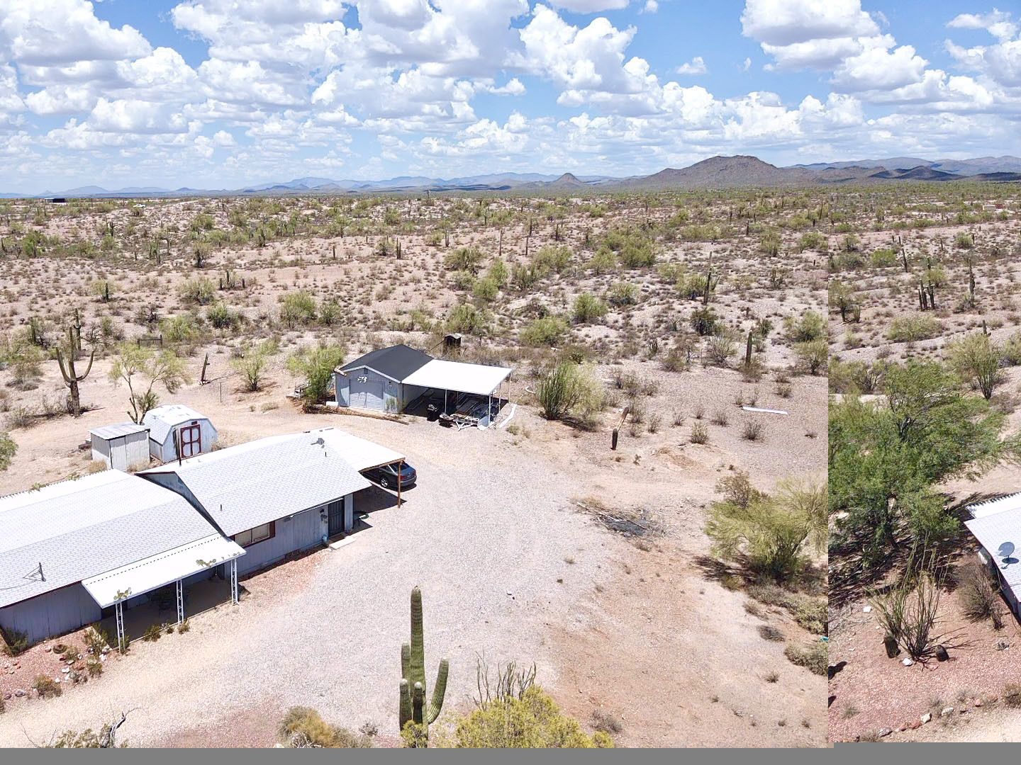 26331 WEST ROCKAWAY HILLS DRIVE – Nestled conveniently off Grand Avenue, this 4.96 deeded acre private horse property offers a serene desert escape. Surrounded by Saguaros, the landscape stretches endlessly, inviting exploration with direct BLM access. The 1,192 sq ft, 2-bedroom, 2-bath house and existing horse setup allow for immediate enjoyment, yet plenty of space offers the potential for expansion, tailoring the property to fit your equine dreams. Embrace the rustic allure and vast freedom of the desert while enjoying modern conveniences just a stone’s throw away.
