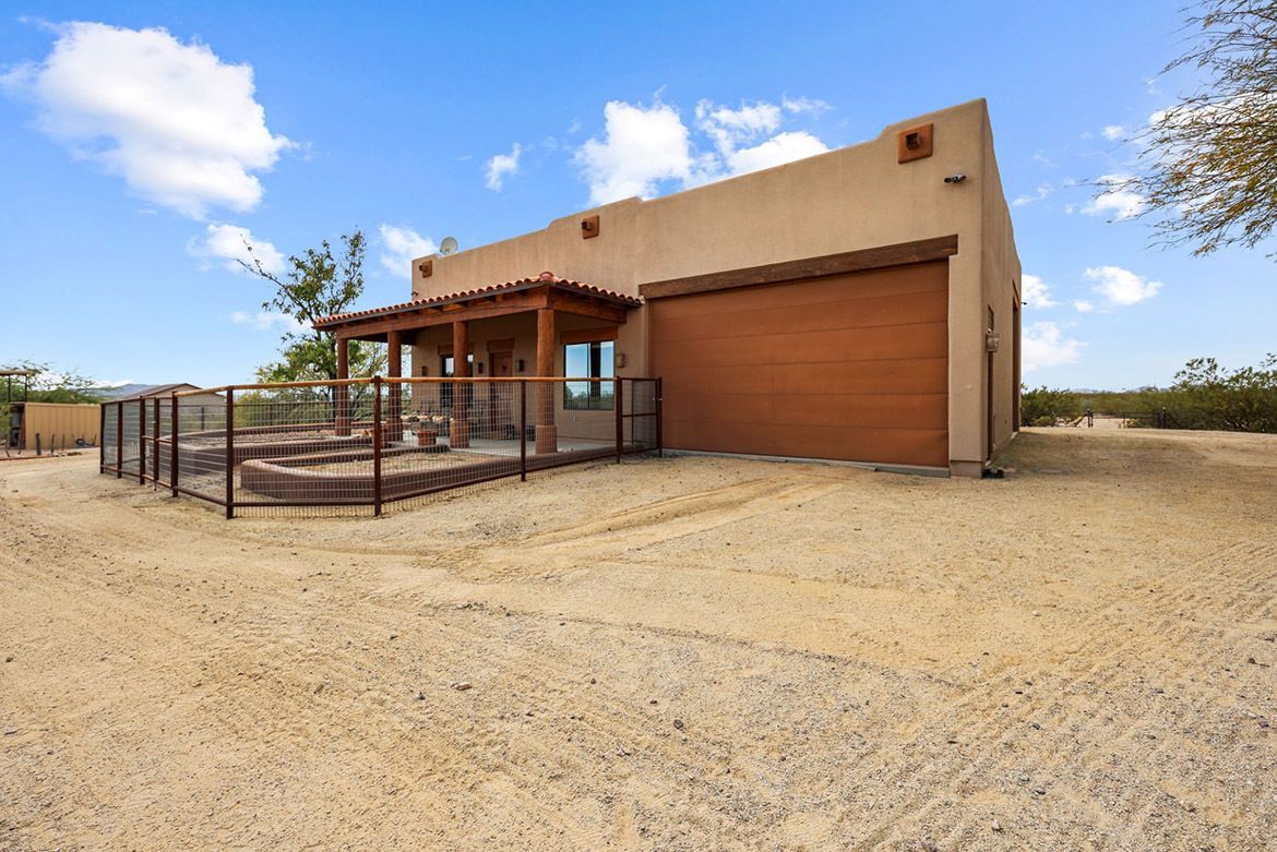 35450 SOUTH GOLD ROCK CIRCLE – A rare offering in Vista Royale: an 8.17-acre luxury equestrian estate bordering BLM land with elite roping and horse facilities. The property includes an arena with sprinkler system, round pen, covered runs/stalls, oversized turnouts with automatic waters, covered hay sheds, tack areas, heated wash rack, full RV hookups, and an oversized RV/shop building making it one of the most complete setups in the area. The 4 BD/4 BA 5,000 sq ft custom home offers an open great room, chef’s kitchen, and resort-style outdoor living with a heated pool, grass and synthetic turf, and built-in BBQ. A private-entry two-office suite adds flexibility for remote work or on-site operations. With a private-entry mother in law suite, and 900 sq ft casita, the property is ideal for hosting or multigenerational living.